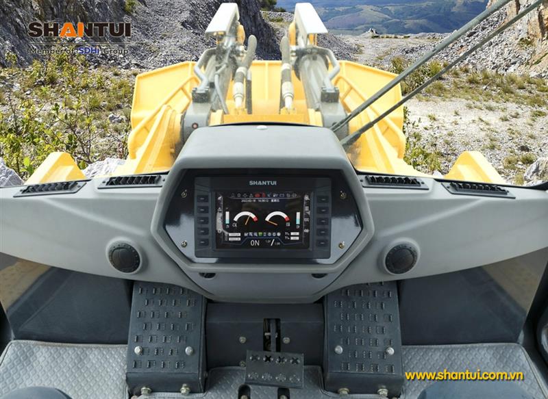 Động cơ chuyên dụng thể hiện sức mạnh vượt trội và hiệu suất năng lượng cao. Khung gầm cường độ cao đặc trưng của Shantui, bao gồm bốn bánh xe và một bánh xích, đảm bảo tuổi thọ sử dụng lâu dài. Các nút điều khiển tích hợp cho phép nâng hạ và thu hồi gầu tự động, giúp vận hành đơn giản và chính xác.