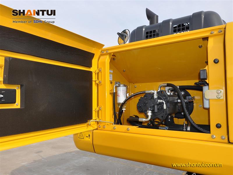 Máy xúc đào Shantui SE220LC 22,8 tấn gàu xúc 1,05m3 sử dụng động cơ Cummins B5.9 6 xi-lanh đáp ứng tiêu chuẩn khí thải Tier II, mang lại hiệu suất mạnh mẽ, độ bền cao và tuổi thọ lâu dài. Nó được trang bị hệ thống lọc nhiên liệu ba cấp để bảo vệ tối ưu. Hệ thống thủy lực phản hồi âm đảm bảo hiệu suất đáng tin cậy và dễ bảo trì. Bơm chính dung tích lớn và động cơ được kết hợp hoàn hảo để đạt tốc độ máy cao.