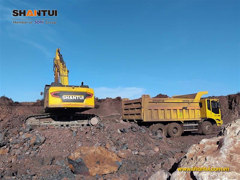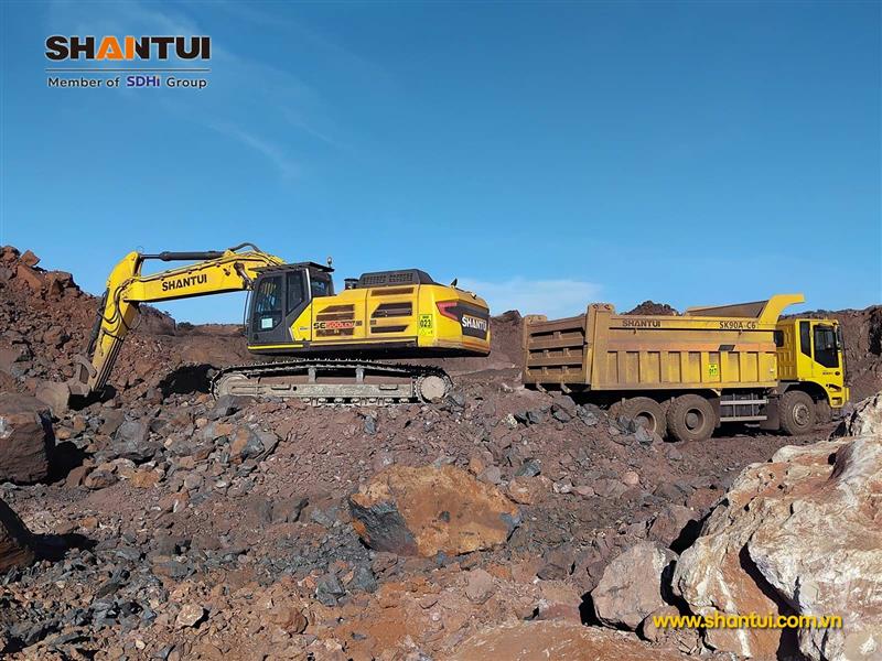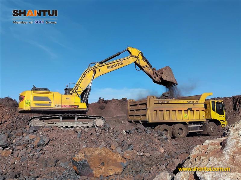 Máy xúc đào Shantui SE500LCW và xe tải chạy mỏ SK90A-C6